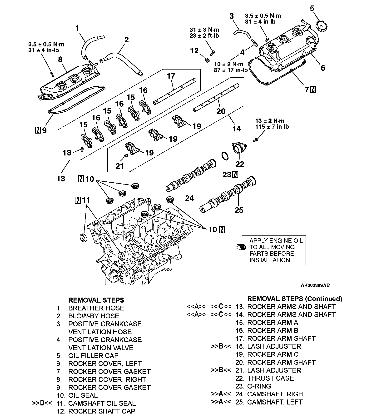 ROCKER ARMS AND CAMSHAFTREMOVAL AND INSTALLATION