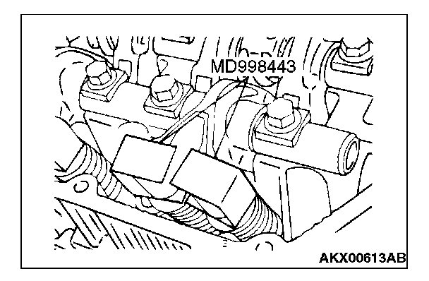 Set special tool MD998443 to prevent the lash adjuster from coming free and falling to the floor.