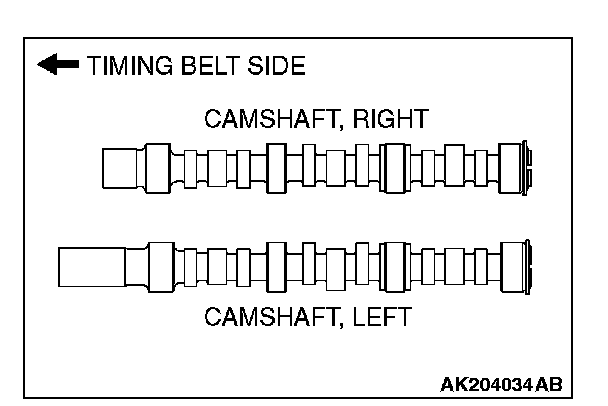 NOTE: The camshaft with a longer overall length is for the left bank.