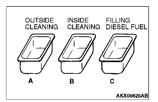 CAUTION: Do not use container C for cleaning. If cleaning is performed in container C, foreign matter could enter the pressure chamber when the chamber is filled with diesel fuel.