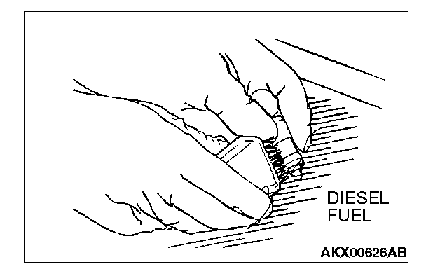 10. Stand the lash adjuster upright to prevent diesel fuel from spilling out. Do not allow the lash adjuster to become contaminated by dirt or other foreign matter. Install the lash adjuster onto the engine as soon as possible.