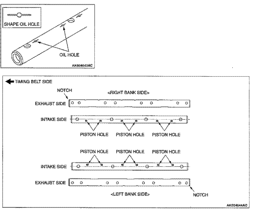 1. Place each rocker arm shaft with the side having the oil holes of the illustrated shape facing down (toward the cylinder head).