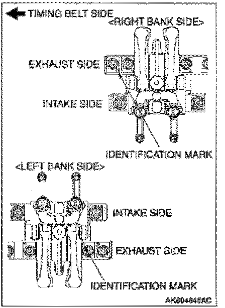 CAUTION: Use care to prevent confusion of the right and left bank camshafts.