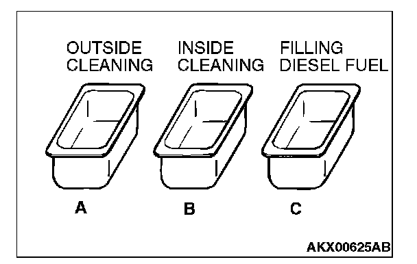 CAUTION: Do not use container C for cleaning. If cleaning is performed in container C, foreign matter could enter the pressure chamber when the chamber is filled with diesel fuel.