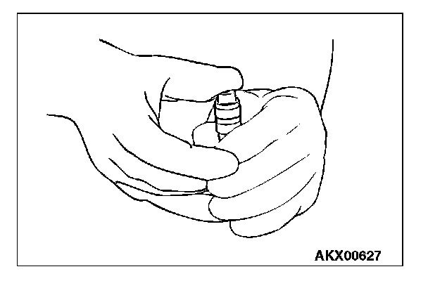 9. Remove the lash adjuster from the container, then stand the lash adjuster with its plunger at the top. Push the plunger firmly and check that it does not move.
