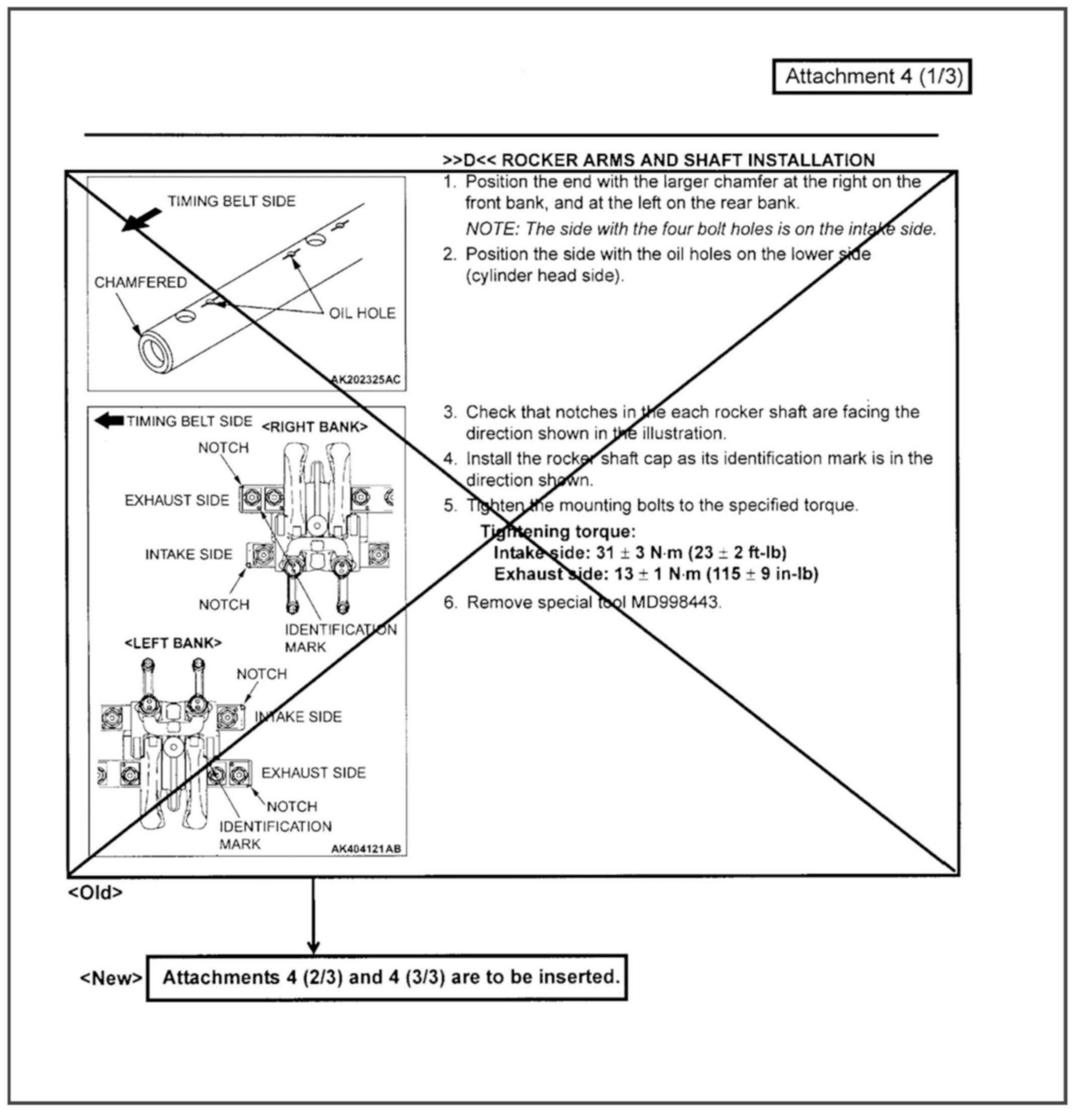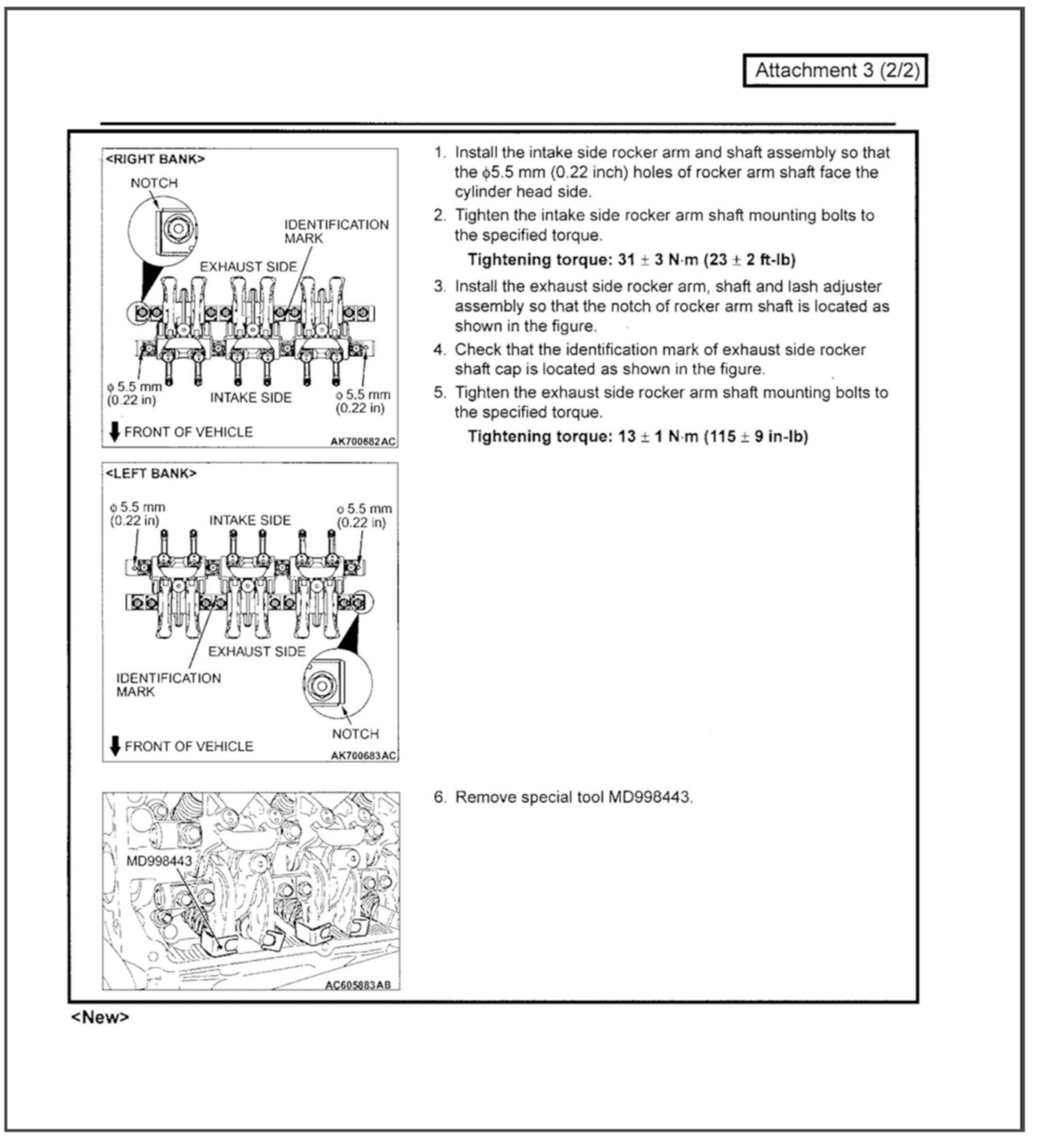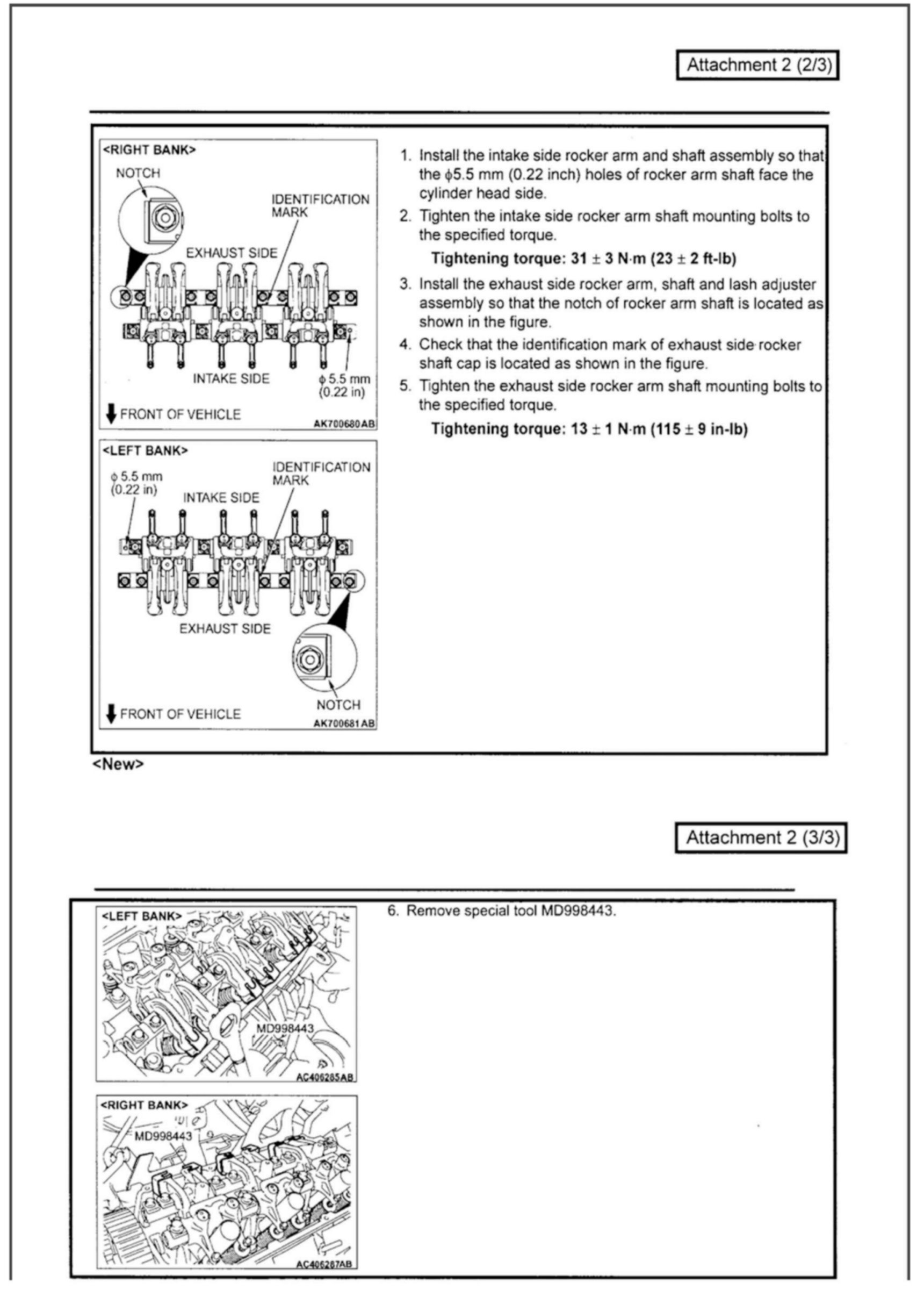 The identification notch on the intake rocker arm shaft for the 6B31 & 6G75 MIVEC engines has been eliminated. This bulletin contains modified service procedures related to this change.