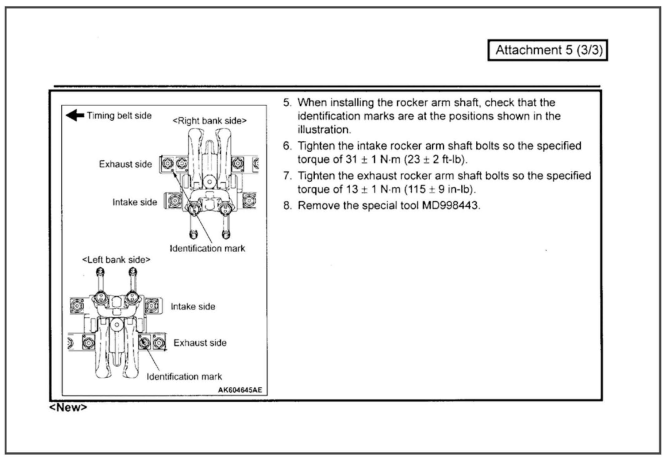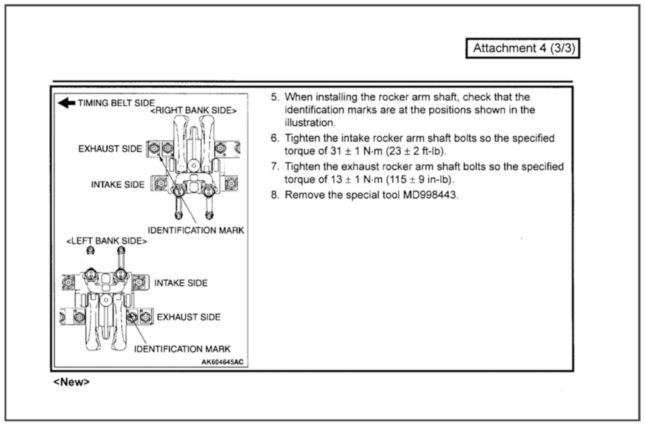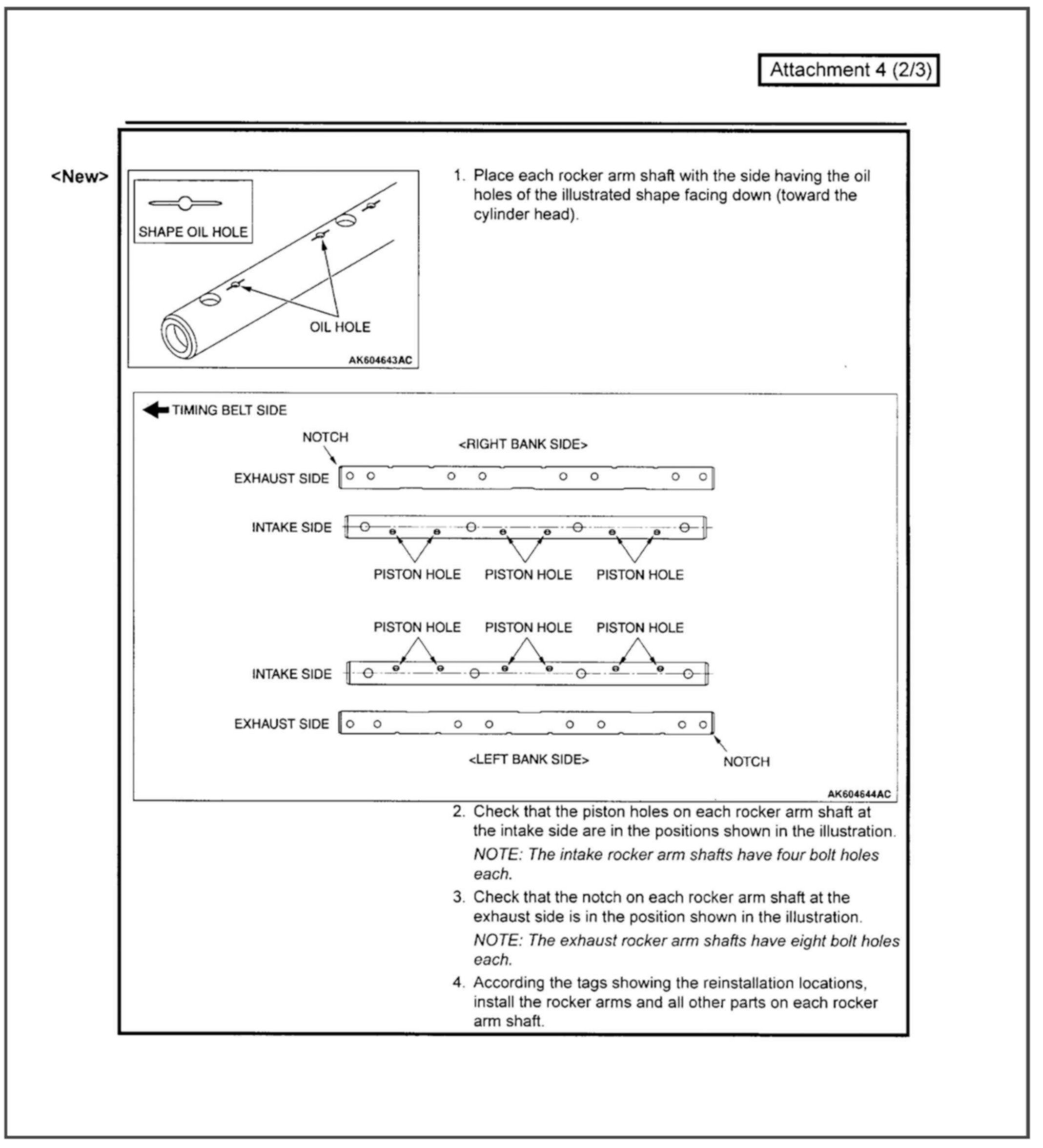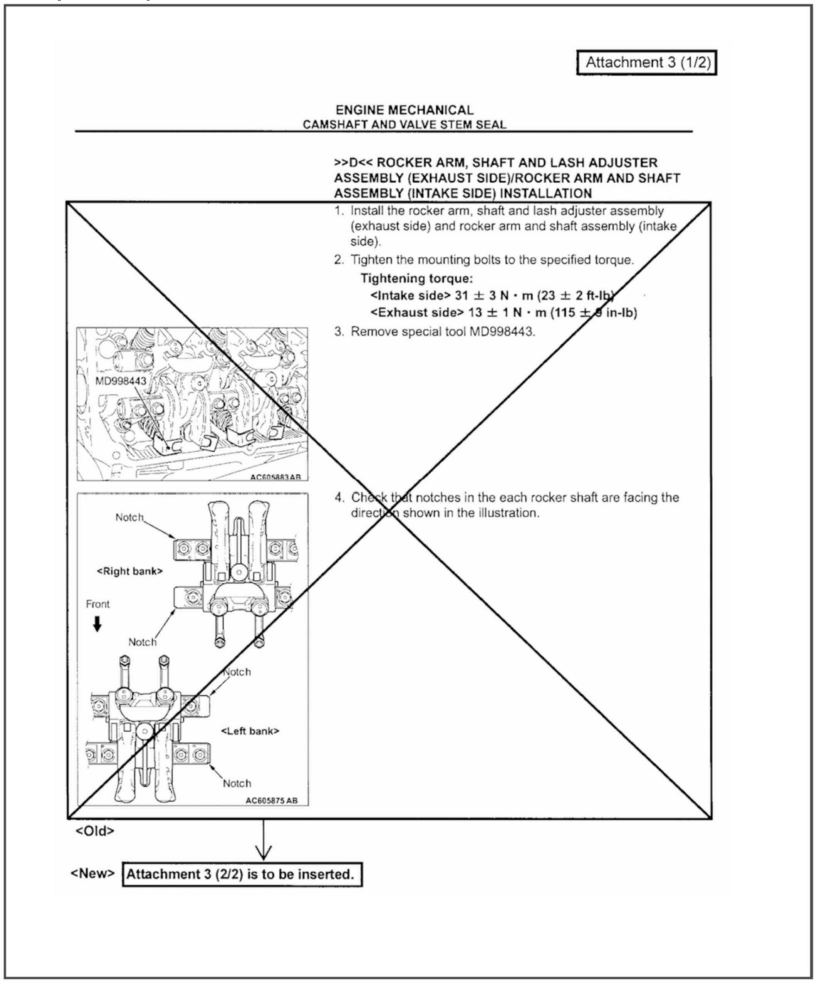 The identification notch on the intake rocker arm shaft for the 6B31 & 6G75 MIVEC engines has been eliminated. This bulletin contains modified service procedures related to this change.
