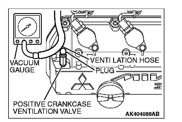 3. Disconnect the ventilation hose from the positive crankcase ventilation (PCV) valve, and connect a vacuum gauge to the ventilation hose.