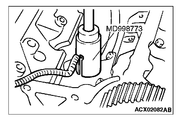 CAUTION: When the knock sensor replacement is performed, use scan tool MB991958 to initialize the learning value (Refer to Initialization Procedure for Learning Value in MFI Engine).