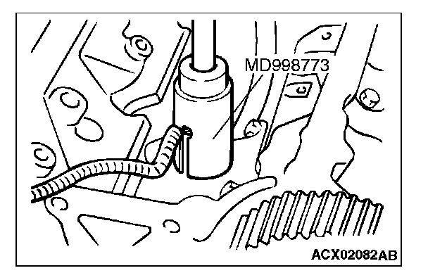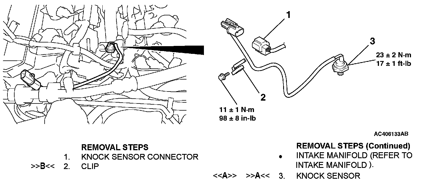 CAUTION: When the knock sensor replacement is performed, use scan tool MB991958 to initialize the learning value (Refer to Initialization Procedure for Learning Value in MFI Engine).
