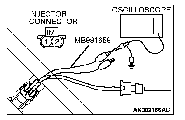 1. Disconnect the injector connector, and connect the test harness special tool (MB991658) between the separated connector. (All terminals should be connected.)