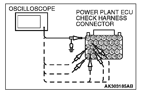 2. Connect the oscilloscope probe to each check harness connector terminal to analyze each cylinder: