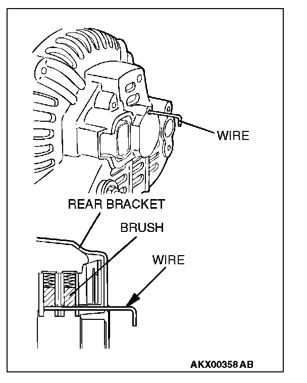 After installing the regulator assembly, insert a wire through the hole provided on the rear bracket while pressing down on the brush, and secure the brush.