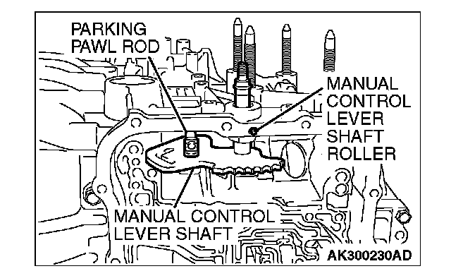 18. Remove the manual control lever shaft and the parking pawl rod.