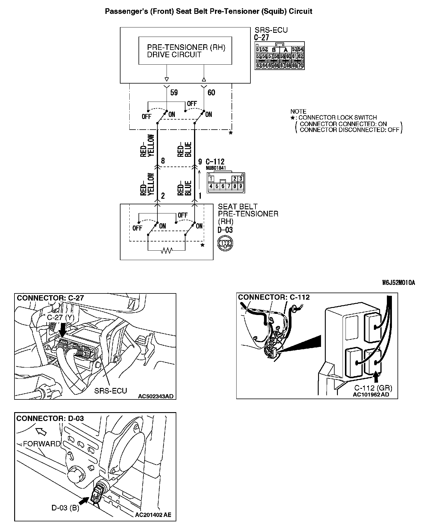 This document has been updated per Mitsubishi TSB# 06-52b-001DTC B1460: Seat Belt Pre-Tensioner (RH) (Squib) System Fault 1 (Short Circuit between Terminals of the Squib Circuit)