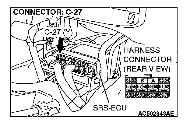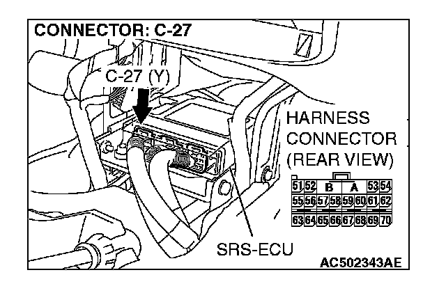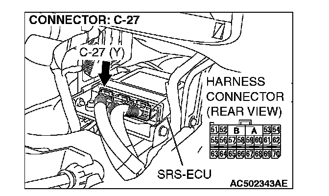 STEP 5. Check the passenger's seat belt pre-tensioner circuit at the SRS-ECU connector C-27.