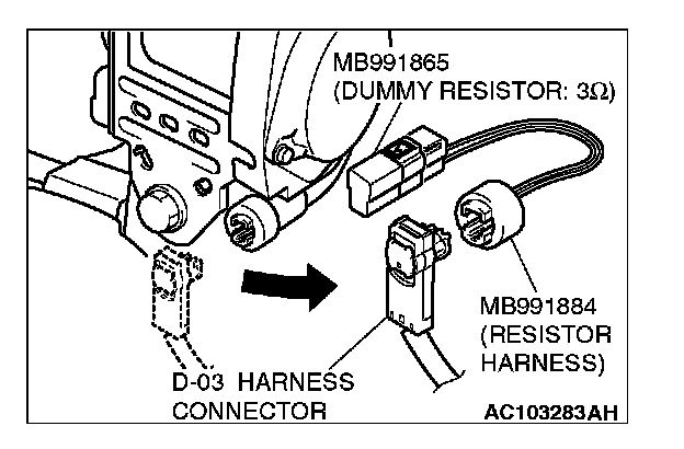 4. Connect special tool MB991884 to the D-03 harness connector.