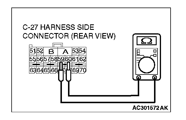 4. Check for continuity between C-27 harness connector terminals 59 and 60.