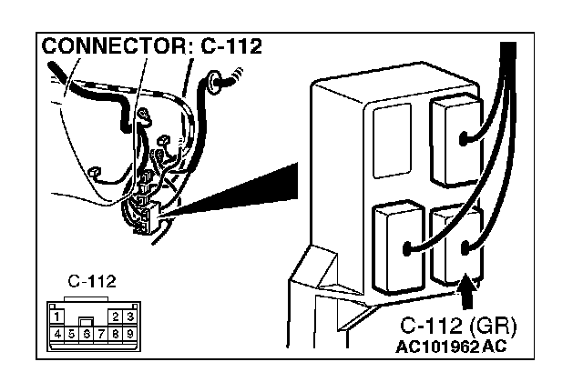 NOTE: After inspecting intermediate connector C-112, inspect the wiring harness. If the intermediate connector C-112 is damaged, repair or replace it.
