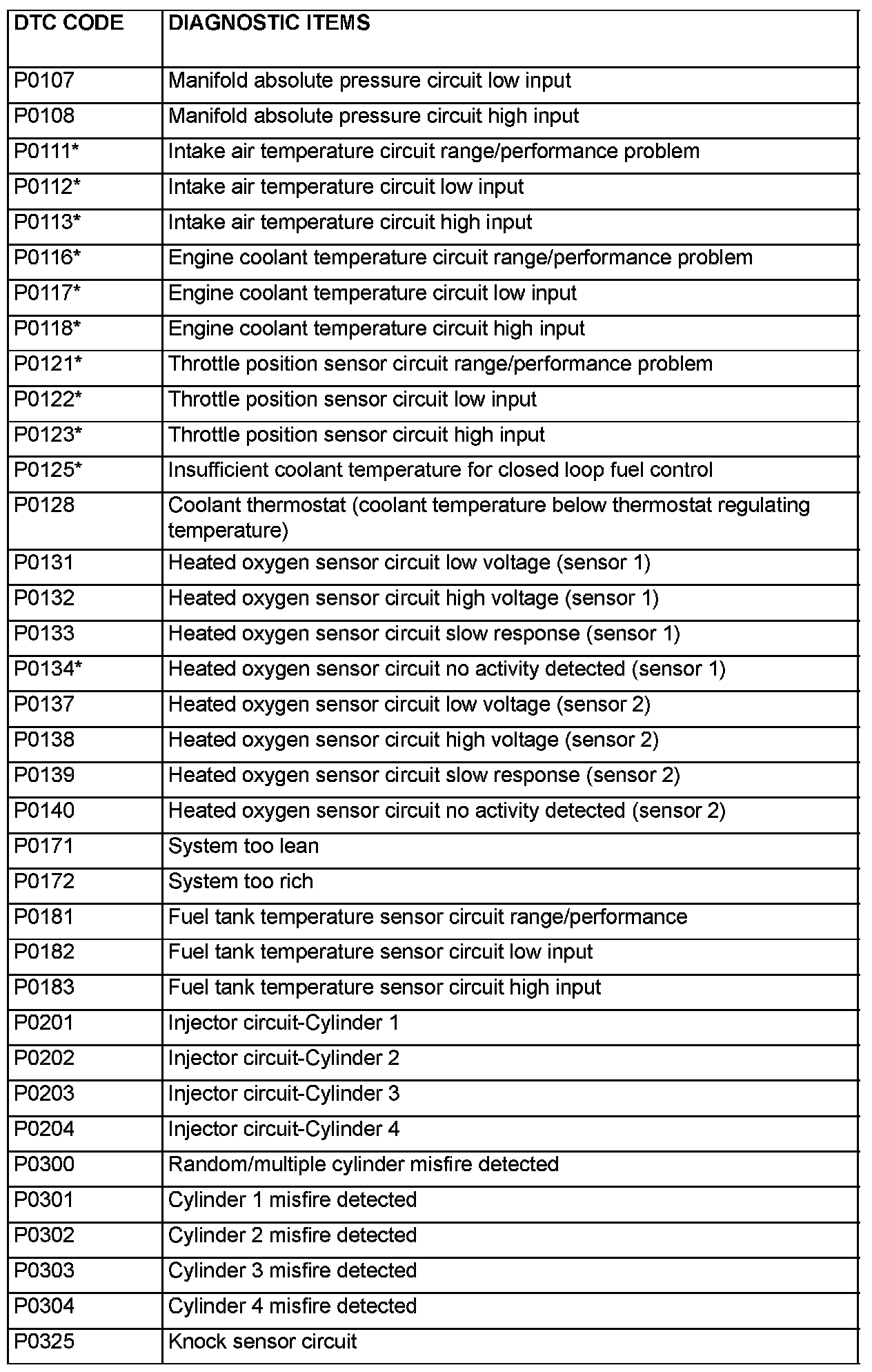 P0107 - P0325: