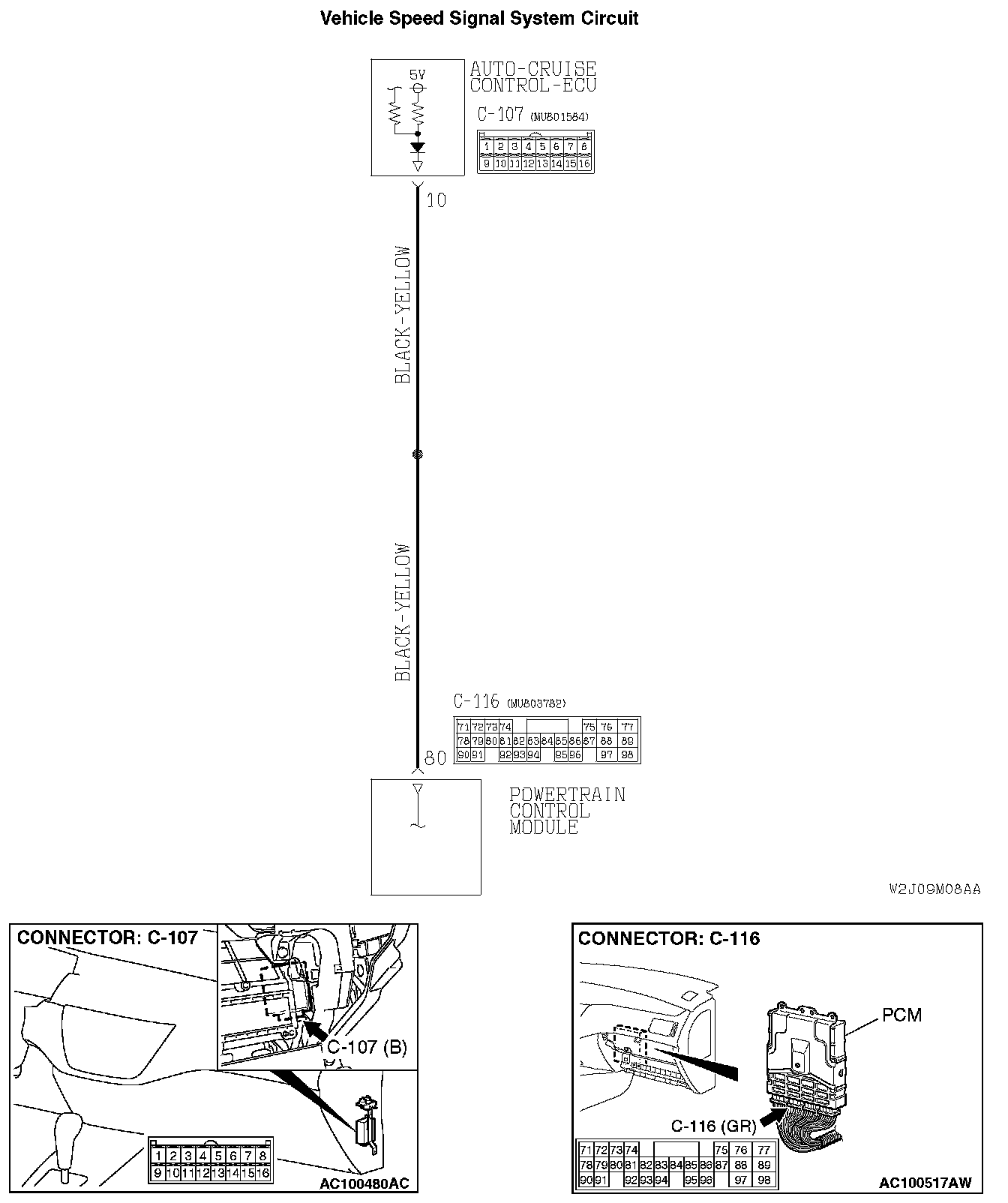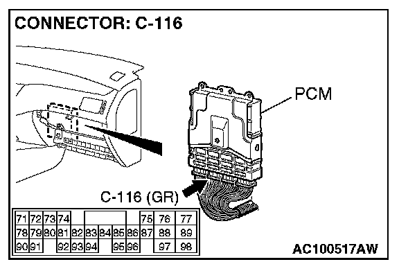 STEP 2. Check the harness wire between auto-cruise control-ECU connector C-107 terminal 10 and PCM connector C-116 terminal 80 for damage.