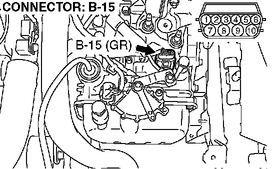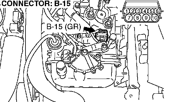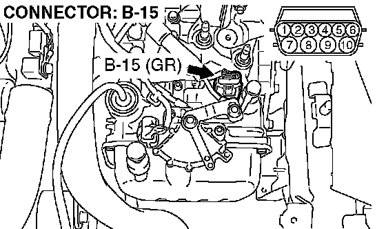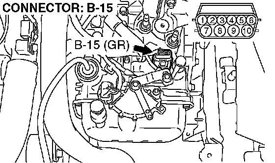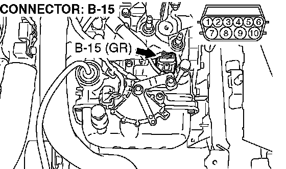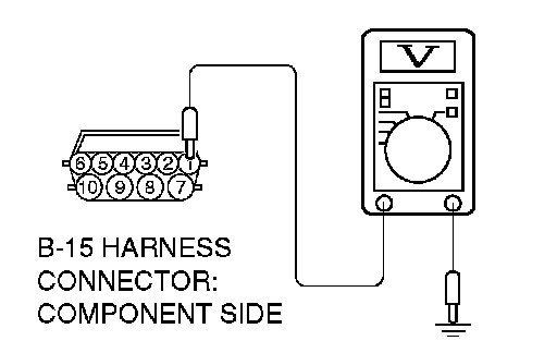 1) Disconnect connector B-15 and measure at the harness side.