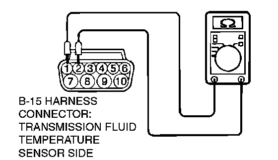 STEP 5. Check the transmission fluid temperature sensor at A/T control solenoid valve assembly connector B-15.