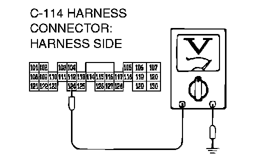 STEP 7. Measure the sensor output voltage at PCM connector C-114 by backprobing.