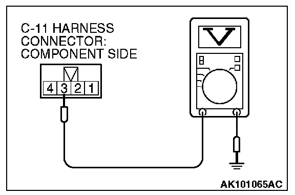 1. Disconnect heated oxygen sensor (rear) connector C-11 and connect test harness special tool, MB991658, to the connector on the heated oxygen (rear) sensor side.
