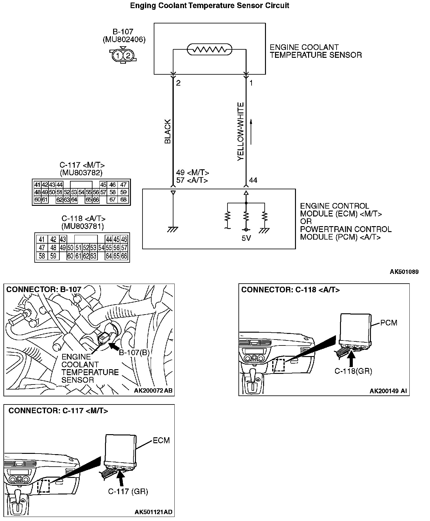 STEP 9. Check for open circuit between engine coolant sensor connector B-107 (terminal No. 2) and ECM connector C-117 (terminal No. 49)