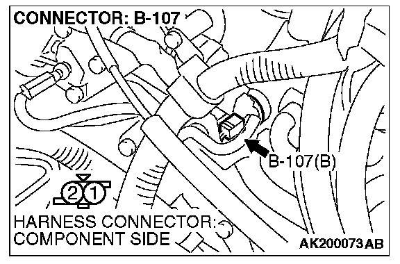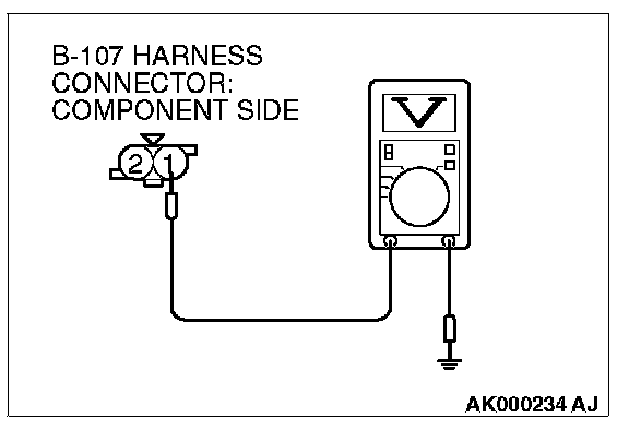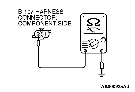 1. Disconnect connector B-107 and measure at the harness side.