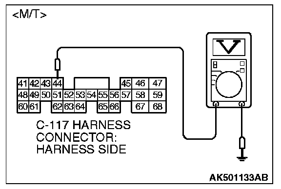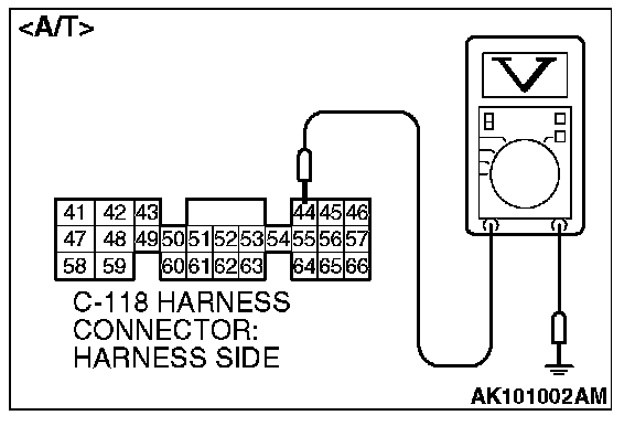4. Measure the voltage between terminal No. 44 and ground by backprobing.