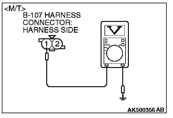 STEP 6. Measure the sensor supply voltage at engine coolant temperature sensor harness side connector B-107.