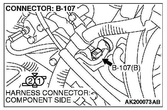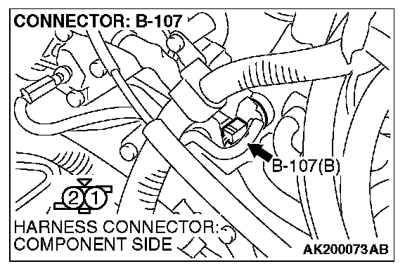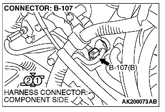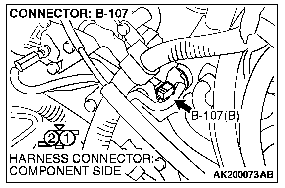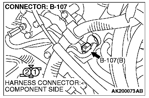 STEP 3. Check harness connector B-107 at the engine coolant temperature sensor for damage.