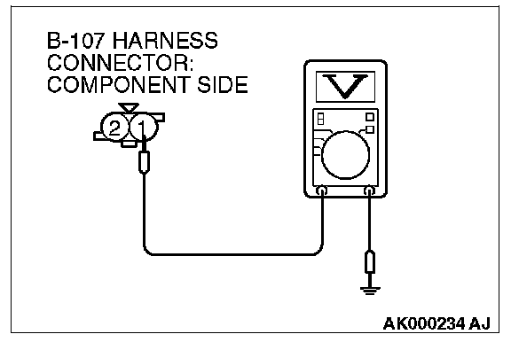 STEP 2. Measure the sensor output voltage at engine coolant temperature sensor connector B-107 by backprobing.