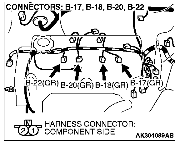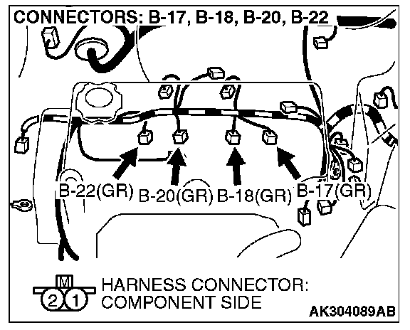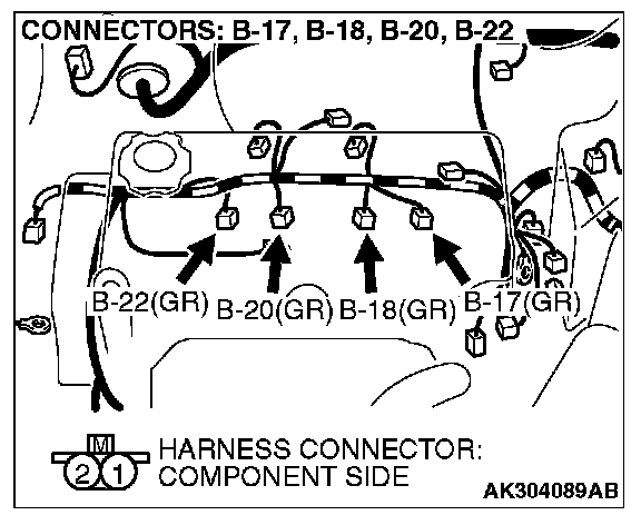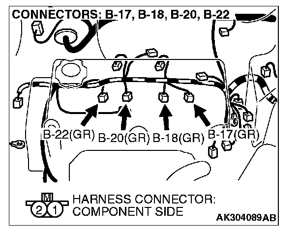 STEP 8. Check connectors B-17, B-18, B-20, B-22 at injector for damage.