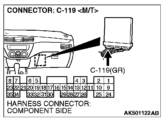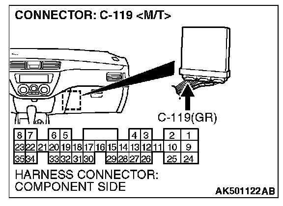 a. Check the harness wire between injector connector B-22 (terminal No. 2) and ECM connector C-119