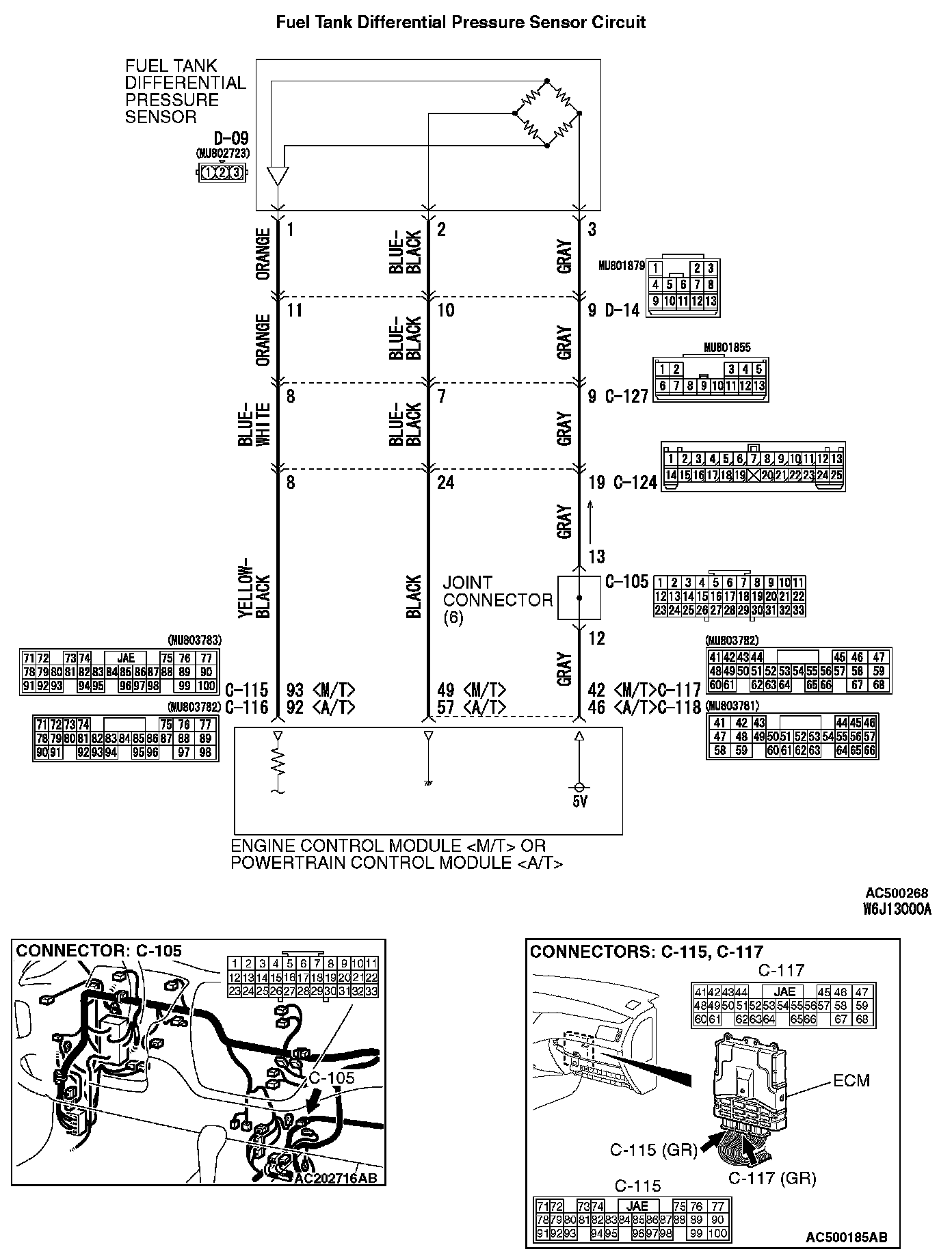 - The fuel tank differential pressure sensor (terminal 1) returns a voltage signal to the ECM (terminal 93)
