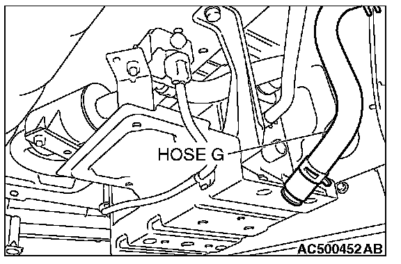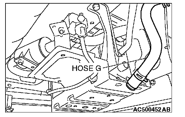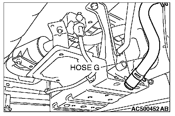 2. Disconnect hose G from the evaporative emission canister side, and plug the hose.