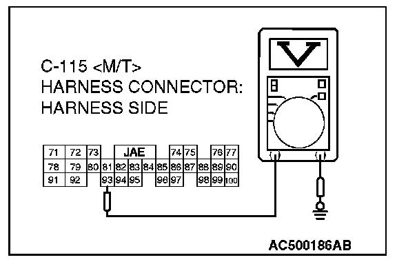 5. Measure the voltage between connector C-115 terminal 93