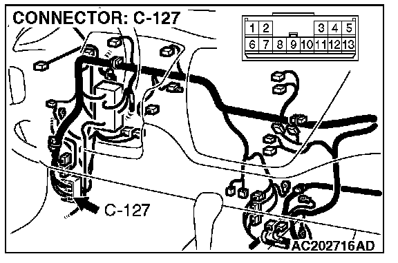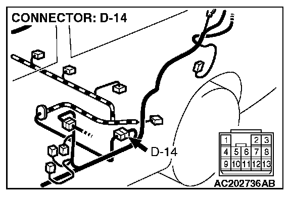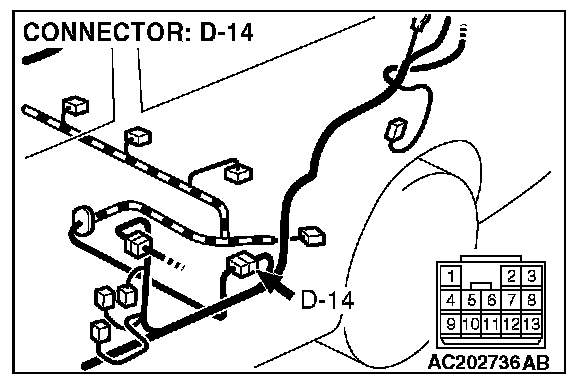 STEP 2. Measure the signal voltage at intermediate connector D-14 by backprobing.