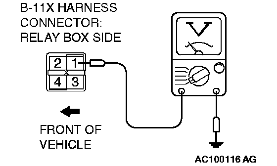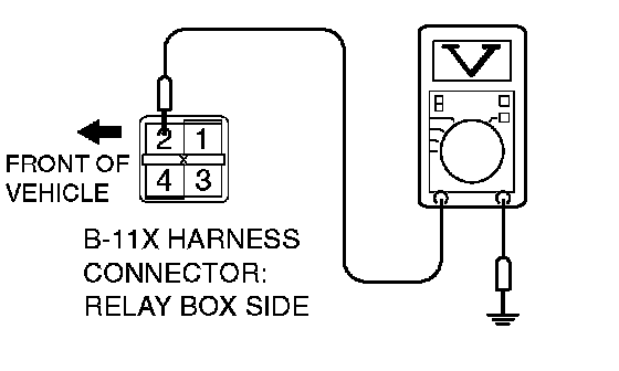 STEP 4. Measure the supply voltage at A/T control relay connector B-11X in the engine component relay box.