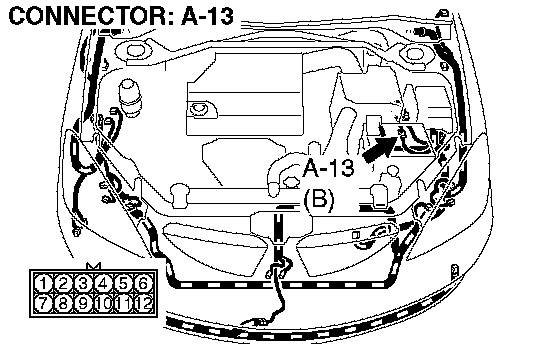 STEP 5. Check intermediate connector A-13 for loose, corroded or damaged terminals, or terminals pushed back in the connector.