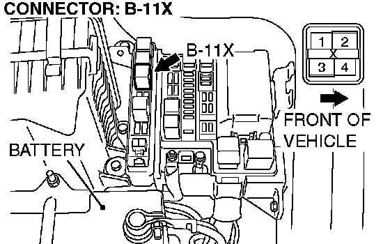 1) Remove the A/T control relay from the engine component relay box connector B-11X.