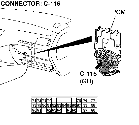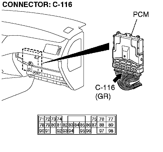 STEP 11. Check PCM connector C-116 for loose, corroded or damaged terminals, or terminals pushed back in the connector.