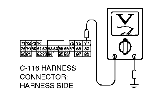 STEP 10. Measure the A/T control relay output voltage at PCM connector C-116 by backprobing.