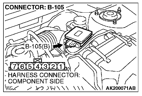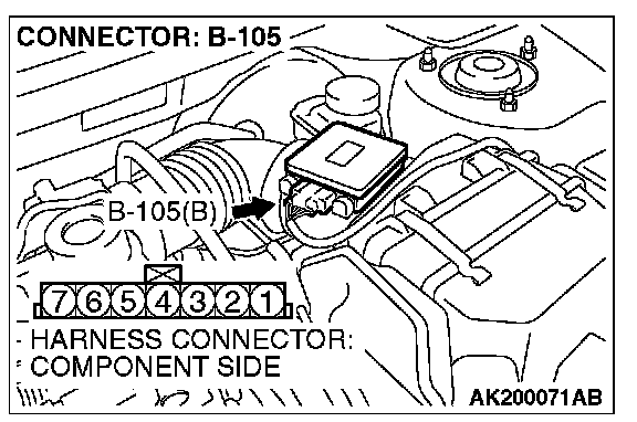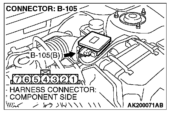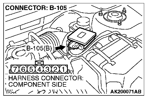 STEP 15. Check harness connector B-105 at barometric pressure sensor for damage.