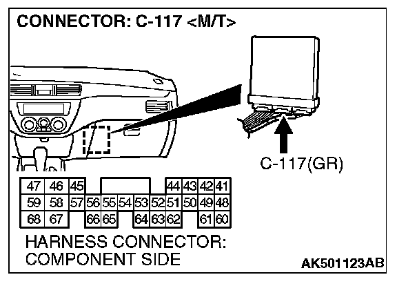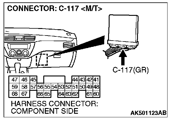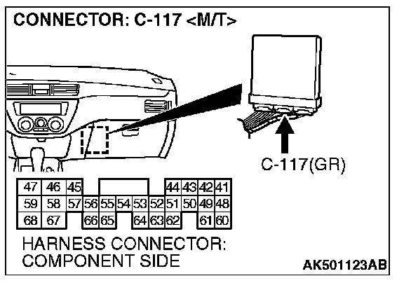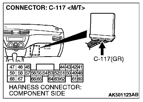 STEP 8. Measure the sensor supply voltage at ECM connector C-117