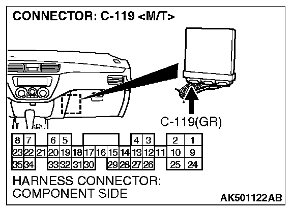 STEP 14. Check for harness damage between barometric pressure sensor connector B-105 (terminal No. 5) and ECM connector C-119 (terminal No. 34)