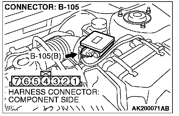 STEP 12. Measure the ground voltage at barometric pressure sensor connector B-105 by backprobing.